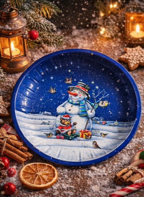 Металева різдвяна тарілка для солодощів та декору 26 см Німеччина Сніговик
