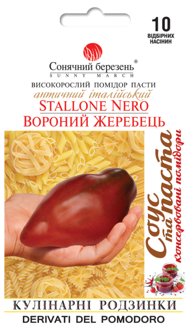 Шалено смачний сорт з незвичайною зовнішністю, що росте величезними потужними рослинами висотою близько 2 метрів. Плоди добре зав'язуються, навіть у сильну спеку, не скидаючи зав'язі. На одній рослині одночасно ростуть помідори двох видів, що властиво старим італійським сортам. Основна маса у вигляді довгих перцеподібних, з невеликими та частими ребрами томатів, але зустрічається багато химерних плодів у вигляді широкої, сплющеної з боків ребристої сливи. Оригінальні красиві помідори шоколадно-бордового забарвлення набирають вагу понад 300 г. Вони мають бездоганний солодкий смак червоно-коричневої томатної м'якоті, майже без насіння, покритої міцною шкіркою, яка не тріскається, але легко знімається з плоду. Цей сорт середнього терміну дозрівання історично вирощується для соусів та пасти. Його томати консервують та в'ялять, використовують свіжими. Дає густий сік, солодкий, з мінімумом кислоти, майже коричневого кольору та класичного томатного смаку.