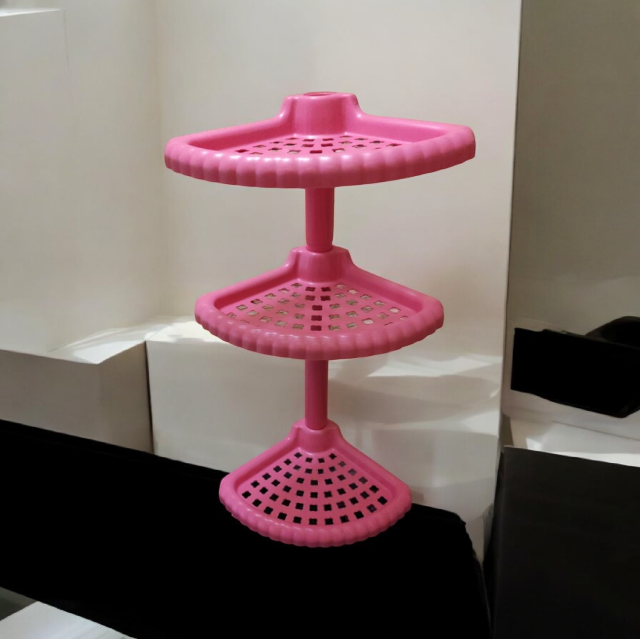 Практична триярусна поличка з міцного пластику для організації простору в будь-якій кімнаті.