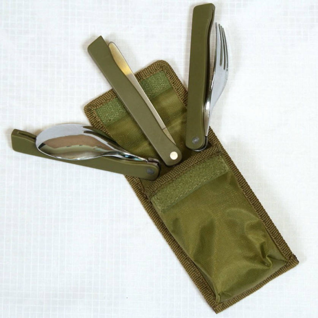Компактний набір з трьох складних столових приборів для походів.