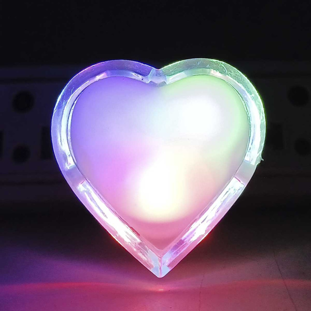 Компактний LED-нічник у формі серця з м'яким кольоровим освітленням.