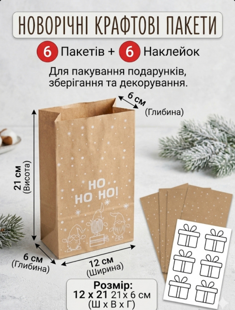 Набір подарункових крафт-пакетів 6 шт. + наліпки у ПОДАРУНОК!, Полтавська область