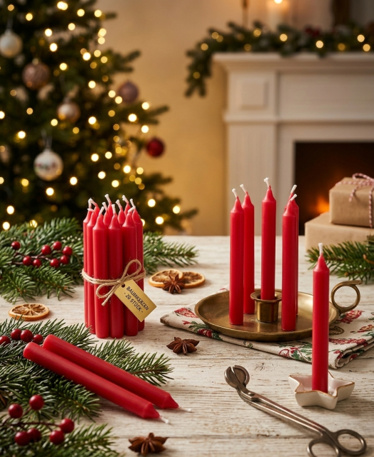 Класичні тонкі свічки Baumkerzen червоного кольору — це вибір тих, хто цінує традиції та якість.