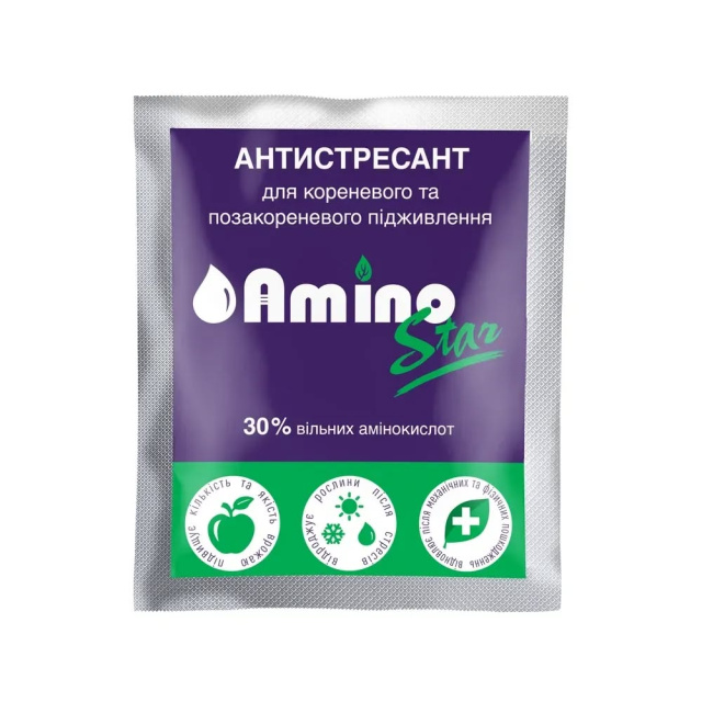 AminoStar – препарат, який має антистресову дію на рослини. Основною діючою речовиною є амінокислоти, які використовуються рослиною для подолання наслідків несприятливих умов вирощування і необхідні для розвитку та росту клітин. Амінокислоти швидко проникають у клітини, беруть участь у синтезі білкових і ростових речовин, поліпшують фізіологічні та обмінні процеси в рослинах, стимулюють швидкий вегетативний ріст та розвиток культур і нівелюють дію стресу. Призначення: застосовується на кімнатних рослинах та при вирощуванні розсади.